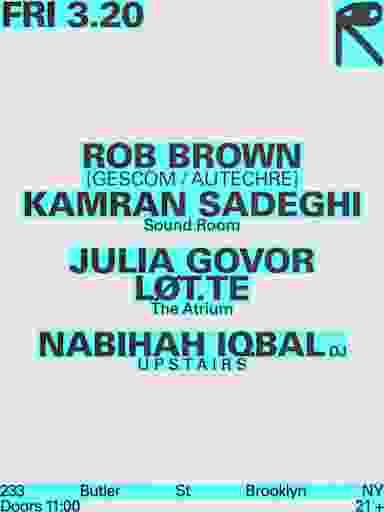 Rob Brown + Kamran Sadeghi / Julia Govor + Løt.Te / Nabihah Iqbal [Dj]