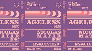 Ageless is an Italian DJ and producer from Rome blending deep, hypnotic house and techno with a forward-thinking edge. Born from Francesco’s passion for music at 16 and officially launched in 2010, the project has evolved into one of the underground’s most compelling rising forces. A resident at Circoloco Ibiza and featured on Circo Loco Radio, AGELESS crafts emotive, late-night sounds that balance groove, tension, and atmosphere. As co-founder of the Waking Dreams label, he continues to push boundaries through standout releases, collaborations, and remixes—shaping dance floors with a style that feels both timeless and distinctly his own. Nicolas Matar is a globally respected house music DJ whose “overnight success” was fifteen years in the making. Raised on Disco, Funk, and Soul by his father—a member of the legendary Studio 54 scene—Nicolas began DJing at 15 and developed a sound spanning Deep House, Soulful House, Nu-Jazz, Techno, and Disco. A former resident DJ at Pacha during Ibiza’s golden era (1993–2001), he has played worldwide and later returned to New York to co-found influential clubs including Cielo and Output. ON THE PATIO: Esquivel is a producer and musician who has risen as a prominent figure in the landscape of Mexican electronic music. With a distinctive approach spanning genres like indie dance, dark disco and house, Esquivel has garnered recognition in the emerging scene, establishing himself as a young promising talent. Renowned for his dynamic sets, Esquivel captivates audiences with his groovy bass lines and masterful fusion of disco, indie dance, and house sounds, ensuring you stay on the dance floor all night long.
