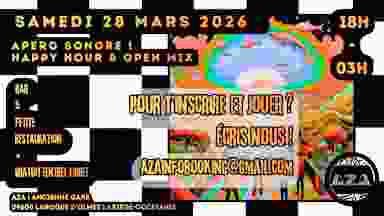 APÉRO SONORE — MARS 2026 Open platines & Happy hour À la croisée des saisons et des rencontres, l’ancienne gare devient un refuge sonore. Un lieu où l’on vient autant pour écouter que pour partager. Un espace vivant, entre nature et cultures alternatives, entre verres qui tintent et basses qui résonnent. AU PROGRAMME Open Platines Scène ouverte électronique pour les curieux, les passionnés, les timides, les audacieux. Premier mix, expérimentation, ou set affirmé : ici tout a sa place. DJ sets & transmissions Sélections maison, accompagnement, conseils, et traversées sonores. Happy Hour au bar 🍻 et entrée gratuite pour terminer le mois en douceur 🎵 Sur place Espace intérieur & extérieur Baby-foot, billard Coin chill Produits locaux Petite restauration APPEL À INSCRIPTION — OPEN PLATINES Tu veux jouer ? Tester, apprendre, partager ou simplement oser ? Écris-nous pour réserver un créneau : azainfobooking@gmail.com