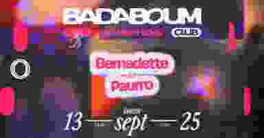 Samedi 13 Septembre // 23H30-07H00 CLUB — Bernadette & Paurro (all night long) CAPSULE — TBA ——————————————————— FREE ENTRANCE FROM 4:30AM Info & Reservation : https://badaboum.paris ——————————————————— BADABOUM 2 Rue des Taillandiers — 75011 Paris ——————————————————— FR: L’accès à l’événement est interdit aux personnes mineures. Une pièce d’identité pourra être exigée à l’entrée. L’établissement se réserve le droit de refuser l’entrée. Fête libre, inclusive et safe. Nous offrons un espace respectueux où chacun peut s’exprimer librement. Tout comportement discriminatoire (homophobie, transphobie, racisme, misogynie, etc.) entraînera l’exclusion et des poursuites. EN: Access to the event is forbidden to minors. Identification may be required on entry. The venue reserves the right to refuse entry. A free, inclusive and safe party. We offer a respectful space where everyone can express themselves freely. Any discriminatory behaviour (homophobia, transphobia, racism, misogyny, etc.) will result in exclusion and prosecution.
