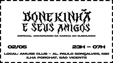 Neste dia 02/05 a nossa Rainha do Submundo faz aniversário e quem ganha o presente são os fãs! Bonekinha irá comemorar seu aniversário com uma line estrondosa e repleta de pessoas talentosas. Nesta edição, contaremos novamente com duas pistas do melhor da Música Eletrônica Periférica Brasileira!