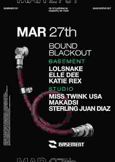 LOLSNAKE returns to BOUND. The Weeeirdos co-founder stitches together full-bore, steely techno with ethereal highs and gooey pockets of euphoria. As her alias suggests, LOLSNAKE throws a playful spanner in the works, but it only serves to heighten the impact of her surging, uncompromising sets. Elle Dee takes the reins. The driving force behind the Mild Fantasy label and event series, Dee’s range covers everything from bubbling acid to searing, monolithic techno. She’s no stranger to BASEMENT, having appeared in the room nearly two dozen times since the club’s opening. BOUND founder and resident Katie Rex raises the stakes. A fearsome DJ, Rex’s mixture of throbbing, concrete-thick techno with tinges of gothic and industrial substrains has helped seal her reputation as a catalyzing force in NY and abroad.