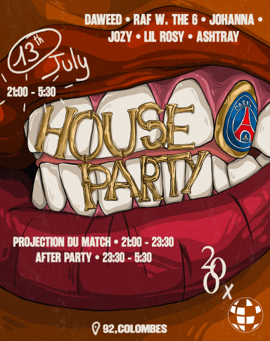 🔋 CHARGER HOUSEPARTY 🔋 Une veille de fête nationale ⚡ Une finale mondiale ⚽ Un loft transformé en terrain de fête 🏠 Bienvenue dans CHARGER. 📍 Loft privé – Colombes 🎧 Line-up 100% charge mentale et physique : Daweed • Raf w. The 6 • Johanna • Jozy • Lil Rosy • Ashtray 🔥 Shatta, Amapiano, Trap & vibes toute la nuit 🏆 Quelques places très limitées pour suivre la finale PSG / Coupe du Monde des Clubs en début de soirée 🍾 Bring your own drinks – on met le lieu, vous apportez l’énergie 🎶 Party ouverte, respect exigé 🪩 En collaboration avec 200 Identity & Discovery 🎟️ Billetterie exclusivement sur Shotgun – places limitées 📩 Adresse envoyée le jour-même aux inscrits Respect du lieu et des autres impératif. Pas de respect, pas de party. ——————————————————— The night before Bastille Day, we plug in and turn up the volume. CHARGER is more than a party — it's a shared energy. 📍 Private loft in Colombes 🎧 Line-up: Daweed • Raf w. The 6 • Johanna • Jozy • Lil Rosy • Ashtray 🏆 Limited spots available to watch the PSG final (Club World Cup) before the music takes over 🍾 Bring your own drinks – keep them for yourself or share the love 🎶 House, club & high-voltage sounds until sunrise In collaboration with 200 Identity & Discovery 🎟️ Tickets only on Shotgun – no sales at the door 📩 Address will be shared on the day of the event 👕 Dress code enforced – stylish or stay home ⚠️ Respect for the space and others is non-negotiable
