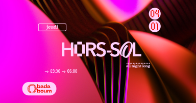 📍 Jeudi 4 Janvier - 23h30/06h00 Club : HORS-SOL all night long La Capsule : Mégaparté ________________________ 🎟 NOS TARIFS : Prévente - entrée avant 1h : 5€ Prévente - entrée toute la nuit : 8€ Entrée sur place : 10€ FREE ENTRANCE FROM 3:30AM RÉSERVATION BOUTEILLE Contactez nous par mail : resaclub@badaboum.paris ou par SMS /Whatsapp only : 06 95 05 39 18 L’accès à l’événement est interdit aux personnes mineures. Une pièce d’identité pourra être exigée à l’entrée. L’établissement se réserve le droit de refuser l’entrée. The entry is forbidden to people under 18. An ID might be asked at the door. The venue reserves the right to prevent the entry. ________________________ 👉 INFOS PRATIQUES : Le Badaboum - 𝘊𝘭𝘶𝘣 - 𝘊𝘰𝘯𝘤𝘦𝘳𝘵𝘴 2 Rue des Taillandiers, 75011 Paris — Stations de métro proches : Bastille, Ledru Rollin, Voltaire - 𝘓𝘪𝘨𝘯𝘦𝘴 : 1, 5, 8, 9 — Bus : 46, 61, 69, 76, 86 ________________________ Pour une fête LIBRE, INCLUSIVE et plus SAFE. Au Badaboum, on entend offrir un lieu respectueux et tolérant pour tous, dans lequel notre public peut s’exprimer comme il le souhaite, à travers sa danse, son style, son univers. Tout comportement ou geste contrevenant à ces valeurs (par caractère homophobe, transphobe, raciste, misogyne, xénophobe, insultant…) entrainera automatiquement l'exclusion du club, assortie d'éventuelles poursuites auprès des autorités compétentes.