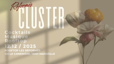 CLUSTER CIME — Rooftop Edition 🩵 Vendredi 12 décembre, on prend de la hauteur. Cluster débarque au sommet, dans un décor suspendu au-dessus de Marseille, pour une nouvelle expérience signée Cluster. L’hiver s’installe, mais ici, la chaleur vient d’ailleurs : de la musique, du soleil marseillais et du rooftop qui domine la majestueuse Église des Réformés. Un spot parfait pour chiller, boire un verre et laisser monter la vibe. 🎶 Line-up à suivre 🥘 Tapas & Atmosphère Tapas spécialement préparées pour l’occasion, ambiance chic, élégante, enveloppée de différents styles de House — de la jazz house à la tech house, en passant par la micro, la minimal, la deep ou encore la chicago house. Une montée progressive, subtilement charnelle, parfaitement alignée avec l’esprit Cluster. Vendredi 12 décembre, on s’élève. Cluster Cime, l’expérience qui vous pousse toujours plus haut. 🎟️ Entrée gratuite sous présentation du billet.