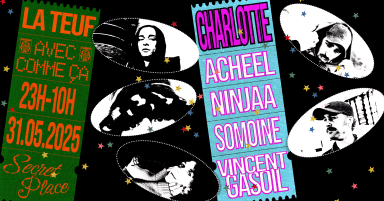 ☄︎☄︎☄︎☄︎☄︎☄︎☄︎☄︎☄︎☄︎☄︎☄︎☄︎ 𖥔 ☄︎☄︎☄︎☄︎☄︎☄︎☄︎☄︎☄︎☄︎☄︎☄︎☄︎ 𝐂𝐨𝐦𝐦𝐞 𝐜̧𝐚 𖥔 𝑳𝒂 𝑻𝒆𝒖𝒇 ☄︎☄︎☄︎☄︎☄︎☄︎☄︎☄︎☄︎☄︎☄︎☄︎☄︎ 𖥔 ☄︎☄︎☄︎☄︎☄︎☄︎☄︎☄︎☄︎☄︎☄︎☄︎☄︎ Ambiance chaleureuse et intimiste dans un tout nouveau spot histoire de créer des liens toujours plus fort entre les danseurs. Une nuit tous ensemble pour aller tater les étoiles sous les rythmes bien groovy des basses qui régalent. Charlotte nous arrive tout droit de Barcelone pour 3h de set contrôlé, le rennais Acheel sera également de la partie pour ravir les âmes égarées. Respect et bienveillance obligatoire <3 ☄︎☄︎☄︎☄︎☄︎☄︎☄︎☄︎☄︎☄︎☄︎☄︎☄︎ 𖥔 ☄︎☄︎☄︎☄︎☄︎☄︎☄︎☄︎☄︎☄︎☄︎☄︎☄︎ 𖥔 𝗟𝗜𝗡𝗘-𝗨𝗣 𖥔 𝐂𝐡𝐚𝐫𝐥𝐨𝐭𝐭𝐞 ⇢