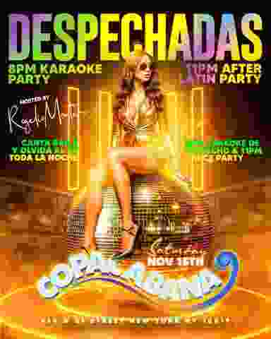 Tickets sell out fast — secure yours now and experience the passion of Despechadas Party & Latin After Party on November 15th at Copacabana NYC.