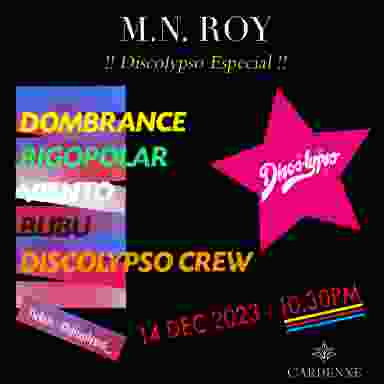 Special Discolypso event at the Iconic MN Roy. Expect a different look for this unique night.... Music from Discolypso regulars: RIGOPOLAR BUBU VIENTO ISAAC FERRY DISCOLYPSO CREW and ????