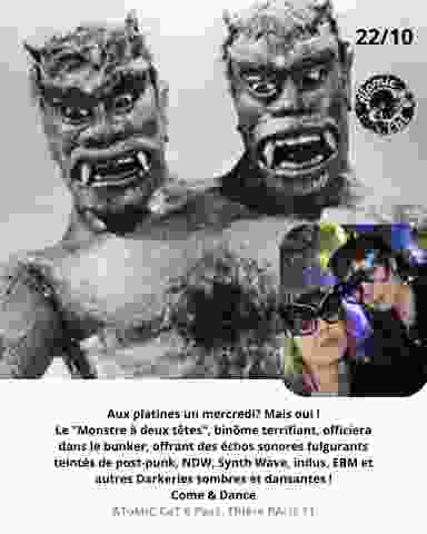 Aux platines un mercredi? Mais oui ! Le "Monstre à deux têtes", binôme terrifiant, officiera dans le bunker, offrant des échos sonores fulgurants teintés de post-punk, NDW, Synth Wave, Indus, EBM et autres Darkeries sombres et dansantes ! Bar à la déco post-apocalyptique incroyable, avec partie dance-floor! Come & Dance - entrée libre https://www.instagram.com/dj.nash_paris/ https://www.instagram.com/tbna.dj/