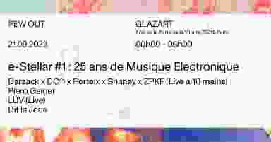 LINE-UP DARZACK B2B SHANEY B2B ZPKF B2B PORTEX B2B DC11 B4ROQUE LÜV PIERO GEIGER __________________________ 🏛 GLAZART ▶️ Soundsystem full d&b audiotechnik ▶️ Show light, pont lumière intégral ▶️ 3 espaces extérieurs (deux terrasses couvertes et un espace chill) ▶️ Anges gardiens et gardiennes pour veiller sur le public ▶️ LGBTQIA+ Friendly ______________________ 🦺 VESTIAIRE Prix par article : 2€ Capacité limitée, venez léger ! Pas de valise, plan vigipirate. ______________________ 🚧 ACCÈS L'événement est réservé à un public de + de 18 ans. Une carte d'identité vous sera demandée à l'entrée. La direction se réserve le droit d’admission. 7-15 Avenue de la Porte de la Villette 75019 PARIS M(7) : Porte de la Villette ______________________ 🕰 HORAIRES D'OUVERTURE Club : Vendredi et samedi de 00h à 6h. After : Tous les samedis et dimanches de 6h30 à 16h. _____________________ Licence 2 : D-22-006725 Licence 3 : R-20-0010015 Conditions générales de vente de la salle sur : https://www.glazart.com/cgv/ ______________________ Glazart www.glazart.com fb.com/Glazartparis instagram.com/glazartparis twitter.com/glazart