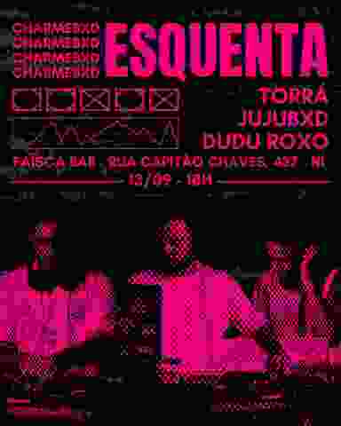 Esquenta é um evento criado pelo coletivo CharmeBXD, que começa com os clássicos dos bailes charme e explora toda a diversidade do R&B também transitando por outros ritmos como dancehall, amapiano, afrobeat e funk. A proposta é criar uma experiência sonora que mistura romance, sensualidade e potência. É do charme ao funk. Tudo no mesmo baile, tudo no mesmo calor.