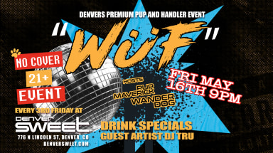 💥 Attention Canines, Critters and Handlers! 🐾 Get cozy at WÜF, Denver’s most-inclusive pup gathering! Join Pup Maverick & Wander Dog on Friday, May 16th at Denver Sweet for a night of play and rooftop romps! Slip into your comfiest gear and let’s paw-ty! 🐶💙 🎶 Tech House beats by DJ Tru 🍪 Delectable Puppy Chow 🚔 Sweet's Animal Control Unit keeping tails wagging 📍 Denver Sweet | ⏰ 9 PM – Close 21+ | NO COVER | Free Parking (first 4 rows along the building) Something SWEET for everyone!