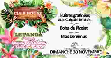 Le Panda présente : Happy Birthday Monsieur Ben Sets House tout le long de la journée LE PANDA CHILLOHM PANDA ROUX GUESTS Entrée libre Restauration non stop Menu spécial Birthday sur réservation : Huitres gratinées aux calçots braisés Boles de Picolat Bras de Venus Prix préférentiel de 18 € en pré-vente