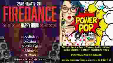 PISTA 1: Power Pop trazendo o Ecletismo Musical que você merece ouvir sem ter que ir pra tão longe. PISTA 2: Uma noite de pura energia. O Fire Dance reúne os ritmos que fazem a pista pegar fogo no Happy Hour que abre a semana do YouPub.