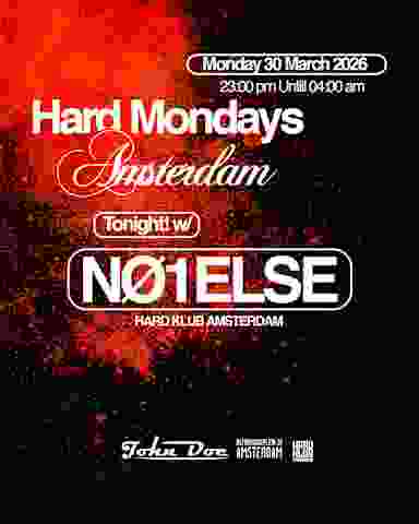 Hard Mondays is a new Hard Techno night at John Doe. Powered by the Amsterdam Techno Sessions crew. You can expect, every week, the Hardest and Fastest-paced Hard Techno event in town! Headlined by your favourite International Hard Techno superstars and local legends. Tonight! Monday, 30th of March 2026, we’re back to @clubjohndoe, our weekly “Fast & Heavy” Hard Techno gathering. And for this one, we invited our resident @no1else.techno to headline the night. Expect an intense five-hour musical journey through Hard Trance, Schranz, and Hard Techno with his unique “Fast & Heavy” approach. Filled with rolling bass lines, puncturing lead pads, hypnotic synths and powerful and heavy kicks. Join us at @clubjohndoe from 23.00 until 04:00 and kick off your week with your favourite Hard Techno event! Tickets are now available via resident advisor. “Hailing from the pulsating heart of electronic music, Amsterdam, @no1else.techno emerges as a relentless force in the Hard Techno scene, unleashing sonic storms that captivate and electrify audiences. Known for a style that pushes the boundaries of intensity, NO1ELSE is a maestro of Hard Techno's dark and driving realms, delivering performances that leave a seismic impact on dance floors.”