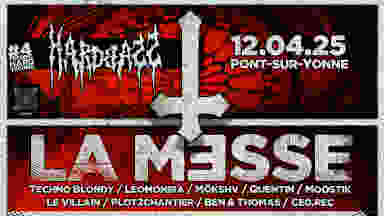 Au nom du père de la Teckno, du fils de la Hardcore et du Saint-Esprit de la Rave, je vous annonce la messe annuelle by HARDBASS. Cher.ère.s. fidèl.e.s, nous offrons cette sainte messe au nom de la Hardtechno, de l'Acid et du Hardcore sous louanges sonores Sono Full Nexo de 20kw. Nos prêtres sont prêts à vous retourner la salle de set abyssaux dans une ambiance dark ecclésiastique. De 19h à 6h la lumière divine vous éblouira par un show light exceptionnel en intérieur. Prêts à vous faire confesser et danser ? On vous attend nombreux pour vivre cette expérience unique. HARDTECHNO / AC!D' TECHNO / HARDCORE avec 🧨 CED.REC SC : https://on.soundcloud.com/TAVhqoQjWWPVEVdZ6 FB : https://www.facebook.com/profile.php?id=100041047972068 INSTA : https://www.instagram.com/cedrec 🧨 TECHNO BLONDY SC : https://on.soundcloud.com/CrhnWpwPcUbTdPS2A INSTA :https://www.instagram.com/techno_blondy 🧨 MOOSTIK SC: http://soundcloud.com/dj-moostik FB: http://www.facebook.com/djmoostik RA: https://www.residentadvisor.net/dj/moostik INSTA: https://www.instagram.com/moostikvolum 🧨 QUENTIN https://www.instagram.com/q.e.n.t.n 🧨 LEOMONIRA SC : https://on.soundcloud.com/rHC5JVx3Mm48PveJ7 INSTA : https://www.instagram.com/leomonira 🧨 MÖKSHV SC : https://soundcloud.com/moksha_tch FB : https://www.facebook.com/mokshatch INSTA : https://www.instagram.com/its.mokshv 🧨 PLOT 2 CHANTIER SC : https://soundcloud.com/plot2 INSTA : https://www.instagram.com/plot2chantier__ 🧨 VILLAIN INSTA : https://www.instagram.com/villain_.dj 🧨 TOM & BEN Performers’ show (Julia Dance) SONO FULL NEXO 20 Kw / PURE LIGHT SHOW / INDOOR Zone fumeur extérieur, cool sécu, vestiaire. Safe Zone: Stand RDR Stand Tatouages / Stand merchandising : T-shirt, Sweat, Clipper,... LE SPOT: ▪️ A 5 mn à pieds de la gare ▪️ Depuis Panam : Gare de Bercy ou Gare de Lyon ▪️ Parking sur place CB acceptée bar & entrée L'OFFRANDE: ▪️ Sur place: 15 € (CB/ liquide) ▪️ Préventes: 10,99 € / 12,99 € / 15,99 € sur Shotgun La monnaie sur place sera le «Token» (1 Token = 2 €). Reprise des Tokens si besoin au stand TARIFS BAR A PRIX DOUX: ▪️ Eau : 1 Token = 2€ ▪️ Soft : 1,5 Token = 3€ ▪️ Bière33 cl : 2 Tokens = 4€ ▪️ Bière50 cl : 3 Tokens = 6€ ▪️ Red bull : 2 Tokens = 4€ ▪️ Consigne : 0,5 Token =1€ 🏴‍☠️HARDBASS 🏴‍☠️ 📸 : https://www.instagram.com/_.hardbass._ FB : https://www.facebook.com/profile.php?id=61566209087916 AVEC ▪️ Itinéraire Bis ▪️ Clubbing TV ▪️ Techno Magazine ▪️ Rave Feed ▪️ Electronews ▪️ Acidteckno . com ▪️ Doogloo' Teuf ▪️ Le coin des clubbers Une attitude brutale, homophobe, miso, raciste, ... se traduira par une sortie définitive, la bienséance et l’ouverture d’esprit étant les valeurs indispensables de nos soirées. !! Faites-vous kiffer, prenez soin de vous et de vos proches, respectez vous, respectez les lieux, respectez les orgas !! Entrée d'alcool interdite / Sortie définitive / Manifestation interdite aux mineurs. L'achat d'un billet ne garantit pas l'accès : l’équipe de sécurité se réservant le droit de vous refuser l’entrée.