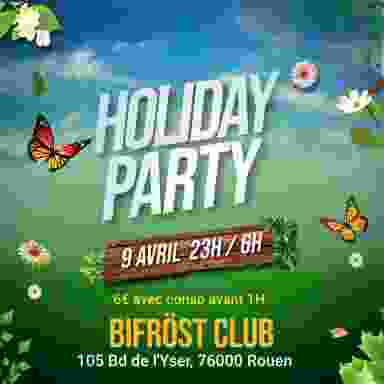 🎉 Soirée " HOLIDAY PARTY by BIFRÖST"🎉 📅 Date: Mercredi 09 Avril 2025, de 23h à 6h 📍 Lieu: BIFRÖST CLUB, 105 Boulevard de l'Yser, 76000 Rouen Accès: Métro et Bus Ligne T4, arrêt Beauvoisine 🔥 L'endroit idéal pour faire la fête à Rouen ! 🔥 Le BIFRÖST CLUB, situé en plein cœur de Rouen, est l'endroit parfait pour passer une soirée inoubliable dans une ambiance conviviale, chaleureuse et sécurisée. Facilement accessible en transport (Métro et Bus), ce club est un véritable lieu de rassemblement pour les étudiants et tous ceux qui souhaitent passer un bon moment entre amis. Vous pourrez y venir faire la fête, mais aussi simplement prendre un verre dans une atmosphère accueillante ! 💥 Tarifs spéciaux 💥 POUR TOUS AVANT 1H : 6€ AVEC CONSO COMPRISE 🎓 Étudiants : 8€ (Entrée Club + Conso + Vestiaire) 💃 Non Etudiants : 10€ (Entrée Club + Conso) ✨ Soirée ouverte à tous ! ✨ Ambiance : Le BIFRÖST CLUB est un lieu chaleureux où l'on se sent comme chez soi, avec une équipe souriante et attentive à vos besoins. 🎶 🔊 Musique : DJ ICE, un DJ talentueux et renommé depuis 30 ans, vous fera danser sur des sons variés allant du disco à la techno, en passant par le funk, la house, l’électro et bien plus ! Infos pratiques : 📞 Réservations de table : 0612754028 🔐 Vestiaire obligatoire pour assurer la sécurité de tous. 🚬 Un espace fumeurs intérieur est à votre disposition. 😄 Personnel souriant, aimable et attentif à vos besoins ! Un club pouvant accueillir jusqu’à 400 personnes pour une soirée festive, sécurisée et mémorable ! 🌟 Tous les étudiants et ceux qui veulent passer un bon moment sont les bienvenus ! 🎊