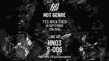 HOT GENRE est de retour au T'es Rock Coco avec ses deux résidents HNO3 et S-006. Au programme EBM, techno indus, hardcore indus et hard industrial techno, bref un programme full indus quoi !