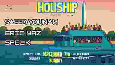 Houship Sunset Boat Party — Georgetown Waterfront w/ Top-Shelf Open Bar On Sunday, September 7, Houship transforms the Potomac River into a floating dance floor. From 6PM–9PM, experience an exclusive Sunset Boat Party with Saeed Younan, Eric Yaz, and SPCL.K. Includes Top-Shelf Open Bar with every ticket. Open-air deck with proper Vibes and monumental skyline views all evening. Boarding 5:30 Sharp No VIP. No dress code. No escape until we dock. Only the river, the beats, and the moment.