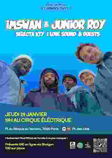 @intersection.Paris present: Icy Dubrock party #1 Imswan longside Jr.Roy + Selecta Kty (I Love Sound)&guests L'événement Rock'N'Dub de l'année à ne pas manquer ! (en petit en bas) P.A.F: Prévente 10€ en ligne via Shotgun 12 sur place À 19h au cirque électrique Pl. du Maquis du Vercors, 75020 Paris Metro: 11 (symbole) Pt des Lilas