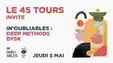 Le crew marseillais IN'OUBLIABLES débarque à Paris et investit le 45 Tours pour un all night long de 19:00 à 02h:00 avec ses résidents ! ▬▬▬▬ LINE UP ▬▬▬▬ ► DEEP METHODS (IN'OUBLIABLES - Paris/Marseille, FR) ↳ FB: