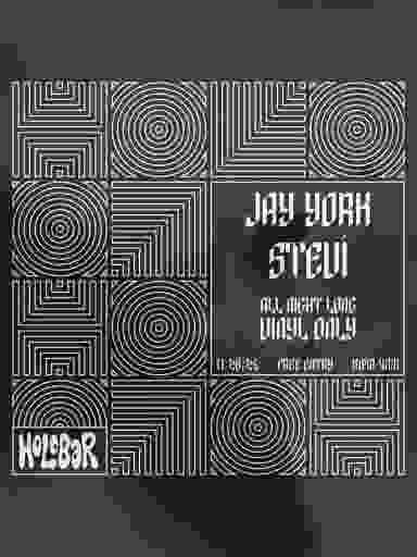 JAY YORK & STE-VÍ take control of the H0l0 Bar Room all night long! A full-length vinyl session moving between the sub-genres of techno. Two selectors, one stack of records, no set-times. Free entry with RSVP.