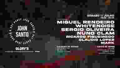 Sábado 15 de Julho | 16:00 - 06:00 John Santo B.Day Party Timetable: 16:00 - 17:00 - Ricardo Figueiredo 17:00 - 18:30 - Claudio Lopez 18:30 - 20:00 - Mark 20:00 - 22:00 - Miguel Rendeiro 22:00 - 00:00 - Whitenoise 00:00 - 02:00 - Sérgio Oliveira 02:00 - 04:00 - Nuno Clam 04:00 - FIM - John Santo CONDIÇÕES DE ACESSO Pré-venda de pulseira: - pré-venda: > €10 (100 Unidades) > €15 (100 Unidades) - no dia: (limitado a lotação): €20 MBWAY - Instruções de reserva e pagamento através do email: glorysovar@gmail.com >NOTA: no email deverá conter o nome da reserva e o número de pulseiras pretendidas. À venda nas noites de 1 e 8 de Julho na Glory's - Ovar. Até dia 15 ravers!
