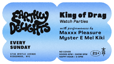 Chin up, kings, it's watch party time. This first-ever televised drag king competition features 10 contestants vying for the title and a star-studded slate of guest judges including Kathleen Hanna, Cole Escola, Lisa Rinna, and Sasha Velour. We'll have local legends, Maxxx Pleasure and Myster Mel E Kiki, live and in the flesh to add some masc magic and virile vamping to the proceedings. ABOUT THE HOSTS Maxxx Pleasure Maxxx Pleasure is a rough-around the edges rock n' roll drag king with a soft and sensitive center. Over an illustrious 10 year career, he has: performed at Bushwig, the Austin International Drag Festival, Sasha Velour's Nightgowns, and Switch n' Play; opened for Chappell Roan in the spring of 2024; starred in an award-winning short documentary; won the Brooklyn Nightlife Award for Drag King of the Year and been nominated for the NYC Glam Awards Best Drag King every year since they brought the category back in 2022; been seen in Vogue, Refinery29, NowThis and his own YouTube channel which gives advice to new drag performers. Myster Mel E Kiki 'Best Drag King NYC' Glam Awards Winner and Drag Out the Vote Ambassador Myster E Mel Kiki is a non-binary, Latinx drag king performer. Born in NYC and raised in Jersey, you can find this king throughout the Jersey, Queens, Brooklyn, and NYC areas.