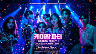 🎉 Rejoignez-nous pour l'after party Korean Night ! 🎉 📅 Date : 28 Janvier 2026 de 23h à 5h 🎶 Musique : K-pop | K-hh | KEdm 🎧 DJ X-OR | DJ Seiji 👗 Dress code : Come as you are Préparez-vous à danser toute la nuit avec les meilleurs sons coréens du moment ! 🎉 Join us for the Korean Night after party! 📅 Date: January 28, 2026, from 11 PM to 5 AM 🎶 Music: K-pop | K-hip-hop | K-EDM 🎧 DJs: DJ X-OR | DJ Seiji 👗 Dress code: Come as you are Get ready to dance all night to the hottest Korean hits of the moment! 💃🔥 LE BATEAU PHARE 3 Port de la Gare, 75013 Paris Metro : Metro 6 Quai de la gare | Metro 14 RER C Bibliothèque François Miterrand +18 Only @koreannightofficial @asiannighteu #kpop #asiannight #khh #party #fête #asiatique #paris #club #nightclub #boîtedenuit #피원하모니
