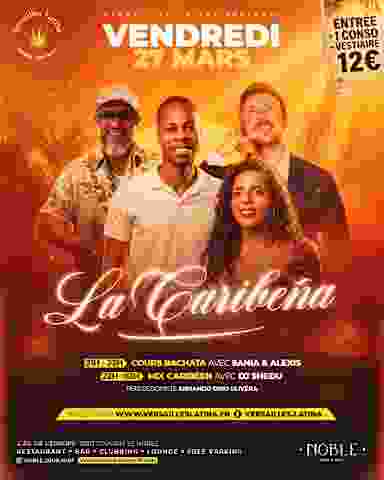 La Caribena ambiance SBK au Noble Jour Nuit Cours de batchata de 21h à 22h puis mix caribeen jusqu’à 02h