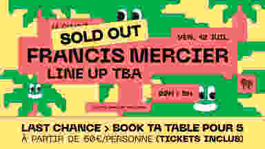 🌳 La Clairière : FRANCIS MERCIER 🌳 22h00 - 05h00 RÉSERVATIONS DE TABLES À PARTIR DE 280€ POUR 5 PERSONNES 🍾 Tables : https://laclairiere.flowers/ Le DJ et producteur haïtien Francis Mercier a remodelé le paysage de la musique house avec un son culturellement et ethniquement riche qui comprend des éléments profonds, mélodiques et mondiaux. Black Coffee, Vintage Culture, Pablo Fierro, Keinemusik, Rüfüs Du Sol, Claptone et d'autres artistes soutiennent sa musique Son flair, son originalité et sa présence énergique sur scène l'ont également amené à participer à des festivals emblématiques tels que Coachella, EDC Vegas, et à se produire à Paris, Londres, Ibiza, Dubaï, New York, Beyrouth, Marrakech, Los Angeles et dans de nombreuses autres villes du monde. Préparez-vous pour une soirée inoubliable ! RÉSERVATIONS DE TABLES À PARTIR DE 280€ POUR 5 PERSONNES 🍾 Tables : https://laclairiere.flowers/ 🌳 ACCÈS 🌳 La Clairière - 1 Carrefour de Longchamp -75116 - Paris 🚌 Bus 244 (jusqu'à 0h30) - Arrêt : Carrefour de Longchamp 🔞 Établissement interdit aux mineurs (contrôle d'identité avec pièce d'identité valide et non présentée sur téléphone)