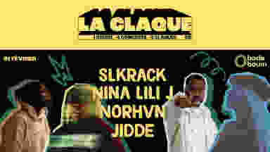 ​Le Badaboum est fier de vous présenter la troisième édition de sa soirée La Claque. ​ ​Le constat est là: la musique ce n’est pas que des artistes signés, qui font des tubes, des millions de vues ou qui passent à la radio.La musique c’est avant tout des sentiments, des émotions et les sentiments ça ne se compte pas. Les artistes qui jouent à La Claque, on n’a pas attendu qu’ils pètent les scores pour les inviter, on sait prendre des risques et on est hyper fier de vous les faire découvrir. Notre but c’est d’aller chercher les artistes encore peu connus, les pépites qu’on découvre sur une obscure playlist, qui font juste de la bonne musique mais qui n’ont pas encore la visibilité qu’ils devraient avoir. Le concept est simple: 1 soirée par mois de 19h00 à 23h30, 4 artistes/groupes vont jouer en live, 40min chacun dans la salle de concert du Badaboum. ​ Alors, es-tu prêt à venir te prendre La Claque de ta vie​ face aux artistes de demain​? Les artistes qui seront présent ce soir là: Nina Lili G et sa pop puissante et moderne SLKRACK et son drill survitaminé Norhvn et sa voix raffinée JIDDE et son rap technique et rythmé