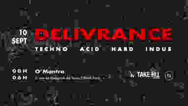 Pour cette rentrée, la team TAKE HIT pose ses bagages dans le club O'Mantra pour une nouvelle soirée Délivrance sur fond de grosse Techno dark Indus et rave