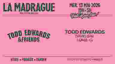 House Boat • La Madrague, Paris • 13 mai 2026 Le mini-festival sur l’eau au cœur de Paris 🛳️ 👉 mercredi 13 mai 2026 (19H > 05H) : Todd Edwards • David Bay • Lüma-G 19H00 : Ouverture des portes 20H20 : Départ du bateau en croisière 21H35 > 23H30 : Lüma-G 22H30 : Retour du bateau à quai 23H30 > 01H30 : David Bay 01H30 > 03H30 : Todd Edwards 03H30 > 05H00 : TBA 05H00 : Fin 🌊 12 croisières, +40 artistes, 9 all night long jusqu’à 03/05H 📍 4 Quai Saint-Bernard, Paris 75005 🥪 Restauration sur place avec Collé Braisé de 19H00 à 22H30.
