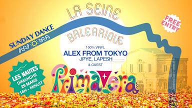 IT’S PRIMAVERA, the world today is a mess, shall we dance maybe ? We invite balearic folks of Paname city and all political leaders of the galaxy to take a break and join the dance sunday march 29th at Les Nautes, 1 quai des Célestins Paris 4. Starts 4pm with the legendary ALEX FROM TOKYO alongside with JPYE & LAPESH cooking a vinyl only magical potion for peace, unity & dance incantation. IT’s A FREE ENTRY BALEARIC PARTY, first day of the new summer lights by our beloved Seine river in the hearth of Paris. One love