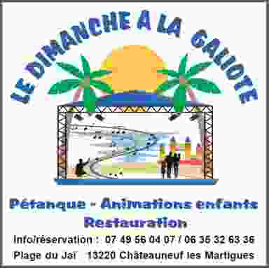 YL EVENTS INVESTIT LES LOCAUX DE LA PLAGE DU JAI CHATEAUNEUF LES MARTIGUES 13220 LES DIMANCHES EN FAMILLE ET PROFITER DES DERNIERES DOUCEURS AVANT L'ARRIVÉE DE L'HIVER . AFIN DE FAIRE PROFITER LES PETITS COMME LES GRANDS!!! DES ANIMATIONS ENFANTS ET UN GRAND TOURNOI DE PETANQUE SERONT ORGANISÉ CHAQUE DIMANCHE AVEC DES THEMES FÉERIQUE DIFFÉRENTS . POUR CETTE PREMIÈRE EDITION POUR LES PETITS --- CHATEAU GONFLABLE LICORNE ET LA PRÉSENCE EXCLUSIVE DE MICKEY & MINNIE BY MAGIC MASCOTTES EVENT'S STAND PHOTO MASCOTTES -- 16H30 ANIMATIONS ENFANTS AVEC DES ANIMATEURS, STAND MAQUILLAGE . POUR LES GRANDS CONCOURS DE PETANQUE AVEC DES LOTS A GAGNER À HAUTEUR DE 150€ CONCOURS EN TRIPLETTE 15€ PAR ÉQUIPE . INSCRIPTION A PARTIR DE 10H00 DEBUT DU CONCOURS 13H00 18H 21H--APERO & ANIMATION DJ BY YANNL ---------------- RESTAURATION SUR PLACE - SNACKING - RESERVATION OBLIGATOIRE --PAELLA ROYAL BY TRAITEUR YALINO PAELLA L' ACHAT EN LIGNE FACILITERA L'ATTENTE ET CONFIRMERA VOTRE INSCRIPTION ---------------- INFO-- 07 49 56 04 07 / 06 35 32 63 36