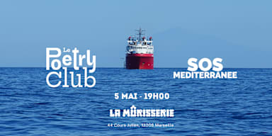 On est ravi·es de vous retrouver à Marseille pour une scène poétique inédite. En partenariat avec SOS Méditerranée, Le Poetry Club pose ses mots au bord de la mer pour une soirée où la poésie fait ce qu'elle sait faire de mieux : relier. Au programme, des voix qui ont traversé des eaux, des terres, des langues. Cinq poète·sses se succèdent sur scène, entre 6 et 8 minutes chacun·e. L'intégralité des fonds récoltés lors de cette soirée sera reversée à SOS Méditerranée. Des bénévoles de l'association seront également présent·es pour échanger avec vous. La soirée dure un peu plus d'une heure, avec un temps de pause, un stand librairie et une ambiance propice aux rencontres.
