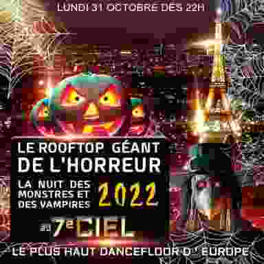 HALLOWEEN ROOFTOP INTÉRIEUR GÉANT FACE À LA TOUR EIFFEL 2000 M2 DE VUE PANORAMIQUE + DE 2000 PERSONNES HALLOWEEN 2022 TOUR EIFFEL - LE + GROS ROOFTOP DES VAMPIRES DE FRANCE - ÉDITION SPÉCIALE HALLOWEEN 2022 ROOFTOP INTÉRIEUR PANORAMIQUE D'EXCEPTION HALLOWEEN 2022 TOUR EIFFEL - LE ROOFTOP DES VAMPIRES HALLOWEEN ROOFTOP PANORAMIQUE D'EXCEPTION AU 7ÈME CIEL (Le plus haut Dancefloor de Paris) sur le plus gros ROOFTOP Parisien (Vue Panoramique) à 10 minutes de la Tour Eiffel. Halloween, Lundi 31 Octobre (22h00 - 05h00) Complet chaque année, dépêchez-vous !!! Vous en rêviez nous l'avons fait en exclusivité pour vous ! + De 2000 personnes sur le plus grand & Beau Rooftop de France pour la nuit d'Halloween 2022. 2000 M2 de rooftop et vue Panoramique face à la TOUR EIFFEL décoré spécialement pour l'occasion made in Halloween. ROOFTOP HALLOWEEN VUE PANORAMIQUE TOUR EIFFEL ILLUMINÉE EN PREMIÈRE LOGE LE PLUS HAUT DANCEFLOOR DE PARIS AVEC UNE VUE EXCEPTIONNELLE SUR PARIS EN FACE DE LA TOUR EIFFEL Lâchez-vous ! Déguisement, masque, une tenue HALLOWEEN est apprécié (mais pas obligatoire). Maquillage, Dragon, Petites sorcières, Vampires, Capes, Fantômes, Diable, Zombies, Monstres, Squelettes, Araignées, Clowns affreux, Citrouilles, Cimetière, Têtes de morts, Cranes, Squelettes d'animaux... ATTENTION : DATE EXCEPTIONNELLE, ÉVÉNEMENT EXCEPTIONNEL, SPECTACULAIRE, UNIQUE ET EXCLUSIF ! Rendez-vous sur les toits de Paris qui vont trembler sous les mixs de nos Dj’s. Halloween exceptionnel sur LE PLUS GRAND & BEAU ROOFTOP PARISIEN (avec vue panoramique sur tout Paris) pour plus de 2000 personnes qui profiteront de ce lieu hors normes avec une vue paradisiaque ! Et oui vous ne rêvez pas ! Vous en rêviez nous l'avons fait ! Vous l'aurez compris, c'est la soirée qu'il ne faudra pas louper cette année ! ATTENTION : ÉVÉNEMENT EXCEPTIONNEL, SPECTACULAIRE, UNIQUE ET EXCLUSIF ! DANCEFLOOR HALLOWEEN de 1200M2 // DÉCORATION 100% HALLOWEEN // ROOFTOP VUE PANORAMIQUE SUR PARIS (TOUR EIFFEL...) // 2000M2 DE VUE PANORAMIQUE // BARS GEANTS // DERNIER ÉTAGE // TERRASSE GEANTE FUMEURS // SHOW LUMIERES DERNIÈRES GÉNÉRATION // + DE 2000 PERSONNES Prenez de l’altitude, le plus haut dancefloor de Paris réservé exclusivement à 2000 personnes privilégiées vous attend ! Perchés au dernier étage d'un bel immeuble, le ROOFTOP baigne dans une lumière naturelle et offre une vue imprenable sur toute la Capitale : une vue à 360° sur la TOUR EIFFEL, ET TOUT PARIS ! À la nuit tombée, vous vous sentirez comme en apesanteur grâce à ses immenses baies vitrées surplombant tout Paris. Absolument magique ! Vous fêterez Halloween 2022 la "tête dans les étoiles" avec le Tout Paris à vos pieds, dans ce Club Panoramique emblématique et d’exception qui saura vous séduire par sa décoration élégante. Alors, rendez-vous au dernier étage de ce ROOFTOP , une institution à Paris, pour une soirée Halloween inédite, insolite et surtout inoubliable. ----- PROGRAMME DE VOTRE SOIRÉE HALLOWEEN ----- - Dancefloor unique en altitude + DE 2000 M2 - DÉCORATION 100% HALLOWEEN - 2000 Personnes privilégiés - 2000m2 de Vue Panoramique sur tout Paris by night - Dernier étage avec immenses baies vitrées surplombant Paris. - Tickets consommations offerts avec votre prévente - Open Cotillons & confettis spécial Halloween - Un des Plus Beaux ROOFTOP de Paris avec vue sur Panoramique sur Paris - Terrasse Géante pour les fumeurs ---- LA MUSIQUE ---- Le DJ monte le volume... Halloween 2022 Musique by Dj MARKO pour une musique généraliste : House, RnB, Electro, Rn'B, Hip-Hop, Disco & latino & more. Que des tubes pour vous faire danser toute la nuit ! Toutes les formules sont valables avec le Pass imprimé ou en photo sur votre téléphone Soirée ouverte à tous - Carte bleue acceptée - Mineurs non acceptés - Possibilité de privatiser des espaces VIP (Associations, Groupes...), contactez-nous. ----- Contacts & infos ----- Pour plus d’infos et autres questions, contactez l’infoline : Téléphone direct : 06 27 23 37 43 Mail : soiree.resa@gmail.com Dress code : Lâchez vous !!!!! Soirée interdite aux mineurs LE ROOFTOP TOWER FL CLUB // TERMINAL 7 PARIS Porte D, Place des Insurgés de Varsovie, 75015, Paris, France