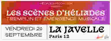Héliades Production, association travaillant au développement et à la structuration de projets musicaux émergents, organise début septembre 2024 son premier tremplin musical : Les Scènes d'Héliades. Nous souhaitons offrir à des artistes débutant leur projet professionnel l’opportunité de bénéficier d’un véritable accompagnement avec des professionnel·le·s du secteur. Notre vision dépasse la simple découverte d’artistes et repose également sur une valeur qui nous est chère : la parité et la mixité femme / homme au sein de l’industrie musicale. En effet, les artistes féminines sont encore très peu représentées dans ce milieu et la parité au sein des groupes rares. Avec Les Scènes d'Héliades, Héliades Production désire briser ces barrières qui limitent la visibilité des artistes féminines et leur offrir un espace d’expression égalitaire. Nous sommes fier·ère·s de vous inviter à partager cette journée riche en musique et rencontres - Programme de la soirée - ✨ 18:30 I Table ronde "Égalité des genres et musiques actuelles, où en est-on ? Etat des lieux et regards croisés" animée par Marie Ponthieux, en partenariat avec les Femmes s'Engagent ✨ 20:00 I Finale du tremplin avec Edda - Iris2000 - Debono ✨ 21:30 I Concert de clôture - Sale Gamine ✨ 22:30 I Dj set - Bangageo - Informations pratiques - 🗓️ 20 septembre à partir de 17h 📍 La Javelle - Paris 12 🎟️ Entrée libre ⚠️ Les Scènes d'Héliades propose une entrée libre afin de vous permettre à toustes de découvrir ces artistes et de passer une bonne soirée. Cependant vous avez également la possibilité de soutenir le développement de ces artistes en faisant un don sur place. Un grand merci à vous 🫶🏻