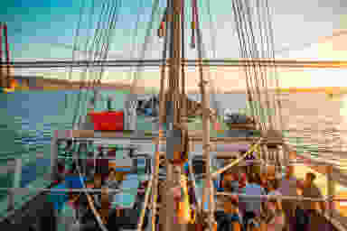 🎫 Entry ticket to Lisbon Boat Party, including 1 welcome drink and 1 cocktail Highlights 🌉 Magnificent landscape sightseeing from the riverside 🎵 All night live DJ, (deep house, R&B, EDM, international music,..) 🍸 Welcome drink + one long drink included in your ticket 💃 Entrance included to one of the TOP clubs in Lisbon General Info 📅 Dates and times: Every Thursday, Friday and Saturday from 7pm - 11pm ⏳ Duration: 4 hours 📍 Location: embark and disembark from Rocha do Conde de Óbidos Pier 🛥️ Route: between Belém Tower and Terreiro do Paço & the North and South bank of the Tagus River 🎵 DJ onboard 🍔 Bar service and food available onboard Have you ever dreamed of a boat party on board a caravel, sailing on the Tagus River, while watching the sunset disappear behind its banks? Then your dreams have come true! Lisbon Boat Party’s special Caravel sailing ship holds more than 200 people and sails the waters of the Tagus frequently throughout the week. Equipped with a private DJ onboard, this is the party of a lifetime that you won’t want to miss!