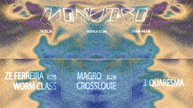 Uma noite intimista de amizades unidas pelo amor à música. Zé Ferreira B2B Worm Class, pela primeira vez “desde a última vez”. Dois grandes amigos e DJs voltam a partilhar a cabine, depois de demasiados anos separados. Prometem uma viagem por mais de uma década de cumplicidade musical. A abrir a noite, João Quaresma, seguido dos nossos residentes Magro & Crosslouie, também em back to back. 14 de março · Temple Club · 00h00 – 06h00 Juntem-se a nós. O Monstro precisa de amigos.