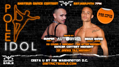 POLE IDOL — District Eagle’s amateur dancing contest - is back! Beaux Banks will be here as a guest judge alongside DC's favorite party monster Bumper. So are you ready to take it to the District Eagle stage for the $150 cash prize and an opportunity to dance at Bunker? This is your chance to step into the spotlight and seduce the room with a routine that’s as hot as it is you. Expect a no-photos, no-judgment, fully expressive event where creativity and crowd energy reign supreme. Once you sign up, we’ll give you a call to go over the details and confirm your spot.