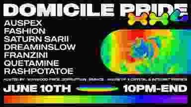 DOMICILE PRIDE XXL 10PM-END SATURDAY DAY 2 JUNE 10TH AUSPEX FASHION SATURN SARII DREAMINSLOW FRANZINI QUETAMINE RASHPOTATOE