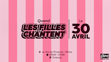 QUAND LES FILLES CHANTENT 📍 Le Clos de Provence – Nîmes 📅 30 avril à partir de 20h(veille de férié) Une soirée pensée pour les femmes. Le 30 avril, Quand les filles chantent transforme le Clos de Provence en une véritable bulle de liberté. Ici, on vient entre copines, on lâche prise, on danse, on chante… et surtout, on se sent bien. Un espace 100% féminin, bienveillant et festif, où chacune peut être elle-même. Une vraie safe place où l’énergie est collective et sans pression 🎤 Côté musique, prépare-toi à enchaîner les classiques qu’on connaît toutes : des années 90 aux années 2010, mixés toute la nuit par un DJ qui sait exactement comment nous faire chanter à tue-tête. 💫 Happenings tout au long de la soirée 🍔 Food trucks & offre food sur place 🍸 Tables hautes à disposition (placement libre) 🎟️ Billet d'entrée : 19,99€ Contact et informations: contact@astra-production.com