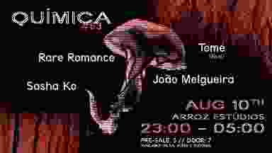 Química will be back at Arroz Estúdios on August 10th, with a line-up featuring a live set by TOMÉ — a Portuguese musician characterized by an aesthetic variety within his releases, ranging from footwork to jungle and passing by ambient and singer-songwriter vibes, with releases spreaded through the internet since 2016, having been featured in labels such as Rotten \ Fresh, Naive, Fera Felina, and surf. Guest DJ sets will be in charge of Porto duo Rare Romance, who will be setting the night's mood with their opening set; and French DJ Sasha Ko, known for her blend of hypnotic and mental sounds with breakbeats. Resident João Melgueira will be putting the cherry on top of the cake with his maximal, energy-filled closing set. Pre-sale tickets are available for €5. At the door, tickets will be available for the final release price of €7. Please note that an Arroz Estúdios membership is required to enter the event. If you don’t have it, you can register at the door for €3.