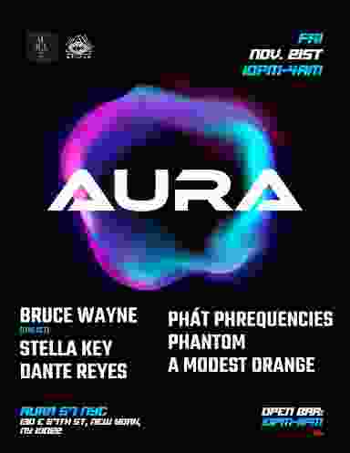 Aura57 is a cocktail-forward lounge and event space located in the heart of Midtown Manhattan. Known for its expertly crafted drinks, intimate design, high resolution screens, state of the art sound system, and flexible private rooms, Aura57 blends high-end nightlife with personalized service. Join us for a memorable club party! Step into a world of style, culture, and creativity with the city’s most fashionable crowd. House music all night long! Date: Friday, November 21st , 2025 Time: Doors: 10:00pm | Ends: 4:00am | Address: Aura 57 | 130 E 57th St, New York, NY 10022 Age Requirement: 21+ Dress Code: Fancy Casual Open Bar: 10pm-11pm DJ Line-up: Bruce Wayne (1pm) Stella Key Phantom A Modest Orange Phát Phrequencies Dante Reyes Requirement: Must have a 21+ valid photo ID. Entry may be denied if intoxicated prior to arrival. All tickets are nonrefundable. By attending, you consent to being photographed and filmed for promotional purposes.