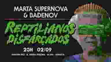 Reptilianos Disfarçados | 02.09 | 23h Na noite do dia 02 de setembro, Marta Supernova e Badenov anunciam uma inédita invasão ao club Madre. Por anos os reptílianos se disfarçam e fazem do planeta Terra uma grande algazarra, uma confusão, uma tormenta. Imagina o que farão numa pista de dança… Produção Zilda Moschkovich
