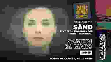 SÄND, alias de l’artiste et productrice Ceilin Poggi, façonne une électro sous tension, imbibée de trip-hop, de pop indie, de neo-soul. Son écriture en français sonne comme une cartographie des failles humaines. Avec Les Signaux Contraires (2026), elle livre un premier album où l’intime se mêle à à la puissance, pulsations organiques, électro viscérale, nappes sombres et basses tribales. Sa voix sensuelle et tranchante sculpte chaque titre comme une nouvelle zone de friction. Sur scène, la matière sonore s'incarne en Sänd, performeuse d'une intensité magnétique. « Une claque sonore » (Hands Up Electro), « Un album audacieux et politique à découvrir de toute urgence" écrit FIP (FIP).
