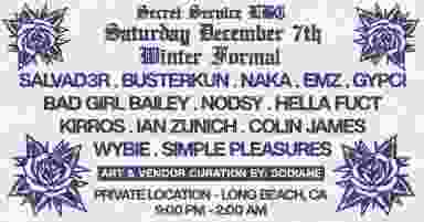 Get ready for an unforgettable night at the First Annual Secret Service Winter Formal, happening Saturday, December 7th, in downtown Long Beach! This is no ordinary winter soirée—it's a swaggy celebration of music, art, and Sagittarius season.
