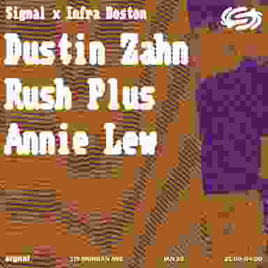 Infra Boston, the party series helping shape the course of Boston’s underground scene, bring their curatorial lens to Signal for a night of shape-shifting techno. Opening the night is techno duo Rush Plus who come packing industrial-tinged rhythms and minimalistic club sounds for a set that heaves with tension and momentum. The vibe is set then for long-standing techno icon Dustin Zahn to deliver his signature blend of precision and heft, tightening the atmosphere though measured ars of controlled propulsion, luring the room into a delirious, catatonic state. Shutting it all down is Infra-affiliate Annie Lew whose patient selections and spacious, elastic rhythms guide the floor through a final stretch of clarity and release.